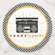 Urban Retro 90's Hip Hop Baby Shower Vibe! presenta un adorable tímido bebé afroamericano. Fondo moderno de ladrillo blanco. Color negro, blanco y dorado. Acentos de patrón de tablero de ajedrez y caja de cambios. ¡personalizar con el nombre de mamá y papá! ©2022 Señales de Miss Fiesta Sassy