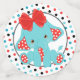 Este lindo juego de mesa es perfecto para una ducha de bebé en la que el género no se ha revelado aún, y también puede ser usado para un bebé o una niña. El tema destacado son los elefantes azules lindos que usan rojo. Los marcos de círculo de polkadot multicolor añaden interés a la pieza más grande. Un corazón rojo y blanco y piezas sólidas a juego añaden color. Muy agradable, colorido y lo suficientemente versátil como para ser utilizado también para una fiesta de cumpleaños.