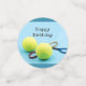 Balón de tenis y raqueta Feliz cumpleaños azul Confetti