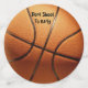 Se muestra un baloncesto naranja con un divertido texto que dice no dispares demasiado temprano
