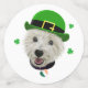 ¡Este pequeño cachorro de West Highland Terrier está listo para sacudir a cualquier fiesta del Día de San Paddy! Con la bandera de Irlanda estampada en su collar del corazón del amor, y su gorra del tazón del derby verde leprechaun, parece que emigró directamente de la isla esmeralda.