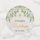 En la parte superior, hay un par de ramas de sauce con hojas verdes, con una cruz dorada (de lámina de oro falso) entre ellas. La palabra "Bautismo" también es de lámina de oro falso, escrita en una elegante letra caligráfica; el resto está escrito en mayúsculas negras. El fondo es de mármol blanco.