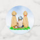 Confeti de ducha para bebés. ¡Consigue uno por cada miembro de la familia! Niños pequeños y dos perros Labs amarillos con gorra de béisbol, guante de béisbol y béisbol y murciélago sentados juntos en el césped junto a un campo de béisbol. Este es un tema lindo para la ducha de bebé de un niño en primavera o verano.