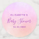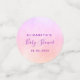 Para una elegante y pequeña ducha. Un fondo romántico violeta, rosa y dorado subió, letras violetas. Con una linda cigüeña voladora sosteniendo a una bebé. Personalice y agregue el nombre de la futura madre y una fecha. El texto Baby Shower y It's a chica está escrito con un moderno y moderno guión de estilo con letras a mano.