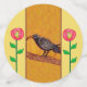 Este confeti de mesa tiene grandes círculos que tienen un cuervo negro sobre una rama de árbol con dos rosas rojas abstractas en cada lado sobre un fondo amarillo. Los círculos medianos son amarillos con rosas abstractos rojos y amarillos centrales, los círculos pequeños son de oro.