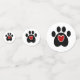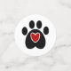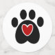 Una huella de pata negra con un corazón rojo recortado con blanco en el centro.
