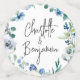Las alegres flores blancas de peonía y las hojas de acuarela verde forman un hermoso patrón en este confeti de boda floral azul bonito de primavera. Una moda, escritura manuscrita moderna con un guión gris elegante de tu nombre y las iniciales para tu boda en el jardín.