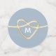 Confeti para bodas azul polvoriento elegante, moderno, minimalista con monograma - inicial, nombres de la novia y el novio y corazón de cuerda dorada.
