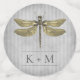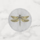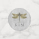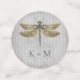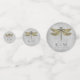 Las mesas están decoradas en el próximo boda o ducha de novias con la mesa de Boda de la libélula con joyas. El diseño de Confetti presenta una libélula con guijarros y viejas piedras sobre un fondo vintage a rayas. Personalice con los monogramas del novio y la novia.