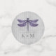 Las mesas están decoradas en el próximo boda o ducha de novias con la mesa de Boda de la libélula con joyas. El diseño de Confetti presenta una libélula con guijarros y viejas piedras sobre un fondo vintage a rayas. Personalice con los monogramas del novio y la novia.