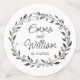 Elegante corona de flores dibujada con el cambiante nombre escrito y fecha para el boda.