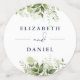 Confeti de mesa de boda floral de vegetación elegante azul marino personalizado con nombres de estilo de firma, iniciales de monograma, fecha de boda especial y mensaje. Diseñado por Thisisnotme©