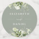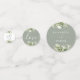 Confeti de mesa de boda elegante de verde salvia con vegetación floral personalizado con nombres de estilo de firma, fecha de boda especial y mensaje. Diseñado por Thisisnotme©