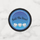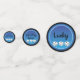 Tres afortunados dados blancos de Bunco listos para que tires y ganes tu Bunco. Diseño moderno en azul, blanco y negro. Personalizar con sus propias citas de Bunco o su nombre de grupo Bunco. Perfecto para los recaudadores de fondos y chicas de Bunco.