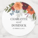 El diseño es moderno y sencillo, con flores de jardín de otoño en colores burdeos, naranjas y verdes con texto de personalizable. Personalice la plantilla con los detalles del boda, las fuentes, etc. que desee.