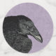 Este confeti de mesa tiene un ilustracion de la cabeza y la cara de un cuervo negro en varios colores morado, gris y rosa.