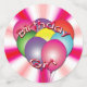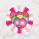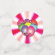 Texto Chica de cumpleaños sobre globos coloridos y fondo giratorio rosa. Este diseño se puede transferir a muchos otros productos.