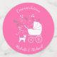 ¡Incluya al hermano mayor o al bebé de piel de hermana en la celebración con este adorable diseño de ducha de bebé de perro Chihuahua! Perfecto para un amante de los cachorros con un bebé en camino. El Chihuahua se encuentra al lado de un adorable carro vintage. ¡El rosa lo hace perfecto para una niña en camino!