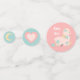 Este bonito juego de mesa es perfecto para una ducha de bebé, sobre todo cuando el pequeño que se espera es un chica. En tonos suaves de coral rosa y verde azulado, las llamas rosa claro son adorables. Otras imágenes incluyen una luna creciente somnolienta y un corazón rosado. El texto de su personalizado está en blanco sobre un fondo rosado. ¡Maravilloso por un fiesta que revela sexo!