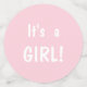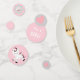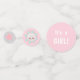 Este bonito juego de mesa es perfecto para una ducha de bebé, sobre todo cuando el pequeño que se espera es un chica. En tonos rosas y grises suaves, el lugar es un adorable poni de plástico. Otras imágenes incluyen un sol, un corazón y una estrella de polkadot. El texto de su personalizado está en blanco sobre un fondo rosado. ¡Maravilloso por un fiesta que revela sexo! Gráficos de Prettygrafik Design, © Prettygrafik.com
