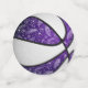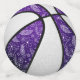 Este coqueto confeti de cumpleaños de baloncesto muestra la imagen de un estilizado baloncesto que ha coloreado alternando paneles morados y blancos en la parte delantera y trasera de cada pieza de confetti y un patrón de doodle floral boho paislies & plumas sobre los paneles morados - de katz_d_zynes