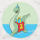 Este es un regalo increíble para un niño pequeño. Desearía a un chico especial un gran cumpleaños con este feliz y enorme dinosaurio verde. Está listo para el fiesta y viene con un gran regalo azul con una cinta amarilla.