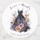 Confeti Chorro nupcial con vestido negro y flor púrpura