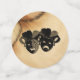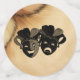 Las máscaras griegas de comedia y tragedia adornan este cuero de vaca parecen fondo.