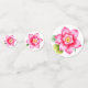 diseño de borde floral con hojas verdes exuberantes, flores rosadas vibrantes, detalles pétalos intrincados, fondo elegante y festivo, blanco
