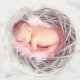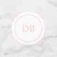 Confección de mesa de moda para un bautismo en rosa y blanco, con cuatro de tus propias fotos de tu bebé. Añada las iniciales de su bebé en rosa contra blanco a un lado del confeti más pequeño, que tiene una cruz de bonito al otro lado.