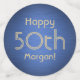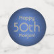 Añade un toque personalizado a las decoraciones de fiestas de cumpleaños con confeti azul personalizado y mesa dorada. Esta plantilla está configurada para una celebración de 50 años de "Saludos a 50 años", pero es sencilla para el personalizar durante muchos años. El diseño presenta un fondo metálico falso y moderno, una caligrafía de escritura elegante y una tipografía vintage elegante. Tenga en cuenta que el oro es color impreso, no Relieve metalizado metálico. Este confetti de mesa festiva le agrega un toque personalizado único a un fiesta especial para él o ella. ¡Salud y cumpleaños feliz!