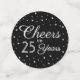Añada un elegante toque personalizado a una celebración del aniversario con un elegante marco de mesa blanca y negra con fotos personalizados. Esta plantilla está preparada para un fiesta de 25 años de "Salud a 25 años", pero es simple para el personalizar durante muchos años. El diseño presenta tres fotos de su elección, tipografía vintage clásica, caligrafía de escritura elegante y purpurina de Relieve metalizado plateado falso. Este confeti de mesa moderno y festivo añade un toque personalizado único a una celebración especial. ¡Felicitaciones y Feliz Aniversario!