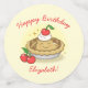 Este adorable trozo de tarta de cerezo es perfecto para una fiesta de cumpleaños de un niño con tema de pastel. Un pastel dulce personalizado con picantes de plumón en un fondo amarillo con acentos rojos.