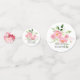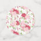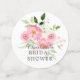 Hermoso diseño floral para ducha de novia con un hermoso ramo de flores rosadas sobre un fondo blanco. Dale la vuelta a nuestro diseño para ver una parte trasera floral coordinada para un toque extra especial.