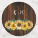 Decora las mesas de tu próxima boda o despedida de soltera con Confeti de Mesa de Boda con Monograma de Girasoles Rústicos. El diseño del confeti presenta un fondo de madera rústica con un elegante ramo de girasoles. Personaliza con los monogramas de los novios.