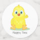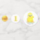 Confeti de mesa de fiesta con pollito feliz y dorado como confeti. Texto listo para ser personalizado. Ideal para baby shower, cumpleaños del primer año y más.