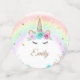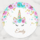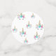 Decoren sus mesas fiestas con estas piezas personalizadas de confeti de unicornio. Están decoradas con chispas doradas, arcos de lluvia, cara de unicornio, flores púrpuras y verde azuladas y un nombre.