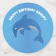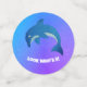 Este confeti de mesa para la celebración de cumpleaños de un niño tiene lindos delfines saltantes purpurinoso que son azules y blancos con diversos antecedentes en azul, púrpura, rosa y naranja. Personalizar el texto con las plantillas.