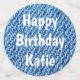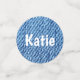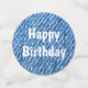 Material de jean de denim azul. Personaliza con el nombre y la celebración de tu elección.