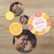 Frutas cítricas caprichosas en tonos rosa, coral, naranja y pomelo rojo rubí. Las rodajas de cítricos dibujadas a mano incluyen una textura pintada con acuarela para dar un toque jugoso a la decoración de una colorida fiesta de boda.
