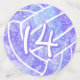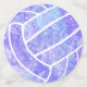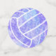 Este lindo confetti de voleibol tiene un color púrpura con acentos azul claro y lila y cuenta con la imagen de contorno de un simple voleibol y un patrón de garabato de paisajes, flores y plumas en blanco - personalizable con sus detalles de celebración - de katz_d_zynes