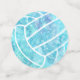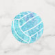 Este coqueto confeti de voleibol tiene un tema de color turquesa con acentos azules y verde azulados y cuenta con la imagen de contorno de un simple voleibol y un patrón de garabato de paisajes, flores y plumas en blanco - personalizable con sus detalles de celebración - de katz_d_zynes