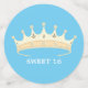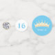 Corona de moda por 16º cumpleaños en la mesa azul turquesa y blanca Confetti. Ideal para celebraciones de cumpleaños 15, 16, aniversario y otras festividades.