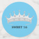 Corona de moda por 16º cumpleaños en la mesa azul turquesa y negra de Confetti. Ideal para celebraciones de cumpleaños 15, 16, aniversario y otras festividades.