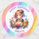 Confeti de fiesta de cumpleaños de chicas personalizados. Decoraciones de fiesta de cumpleaños con tema de anime con un chica de anime sosteniendo una torta de cumpleaños con cintas de arcoiris, flores y mariposas.