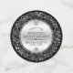 Elegante plantilla de texto en negro y plata para el 25º aniversario del boda, marco negro giratorio con fondo plateado.