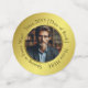 El diseño presenta una foto de personalizable y un campo de tipografía para la personalización con un nombre, fecha de nacimiento, deseo o palabras de sabiduría, todo presentado en formato redondo sobre un elegante degradado dorado. El texto actualmente dice "¡Brillando en todo sentido!" y "Desde 20 años" para la personalización del año de nacimiento. Es un regalo simple, divertido y elegante para cualquiera en su cumpleaños o celebración especial. También se puede usar para familias, amigos o colegas de trabajo a quienes consideras como gente de oro, o para celebraciones especiales como favores de fiesta personalizados para cumpleaños, jubilaciones, aniversarios, fiesta de Año Nuevo o cualquier otra ocasión de oro. Para solicitudes o preguntas especiales, póngase en contacto con el artista en wafadahdalcreates@gmail.com. © Wafa Y. Dahdal - Reservados todos los derechos. Arte de WD