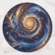 Un remolino de azul real y oro inspirado en la magia del espacio en este diseño de arte moderno.