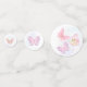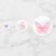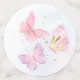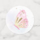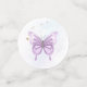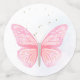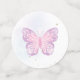 El diseño presenta mariposas de colores pastel con un toque de purpurina brillante.