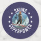 El divertido ilustracion deportivo invernal para esquiar, muestra gráficos de montaña y una mujer en esquís, y el dicho: el esquí es mi superpotencia y pequeñas estrellas. Este es el regalo perfecto para todos los amantes del esquí, las montañas y los deportes de invierno.